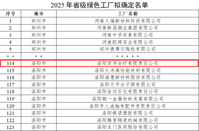 洛阳实华合纤有限责任公司荣获2025年度河南省绿色工厂荣誉称号