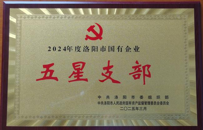 近日,合纤公司党总支荣获中共洛阳市委组织部、中共洛阳市人民政府国有资产监督管理委员会委员会授予的2024年度洛阳市国有企业“五星支部”称号。